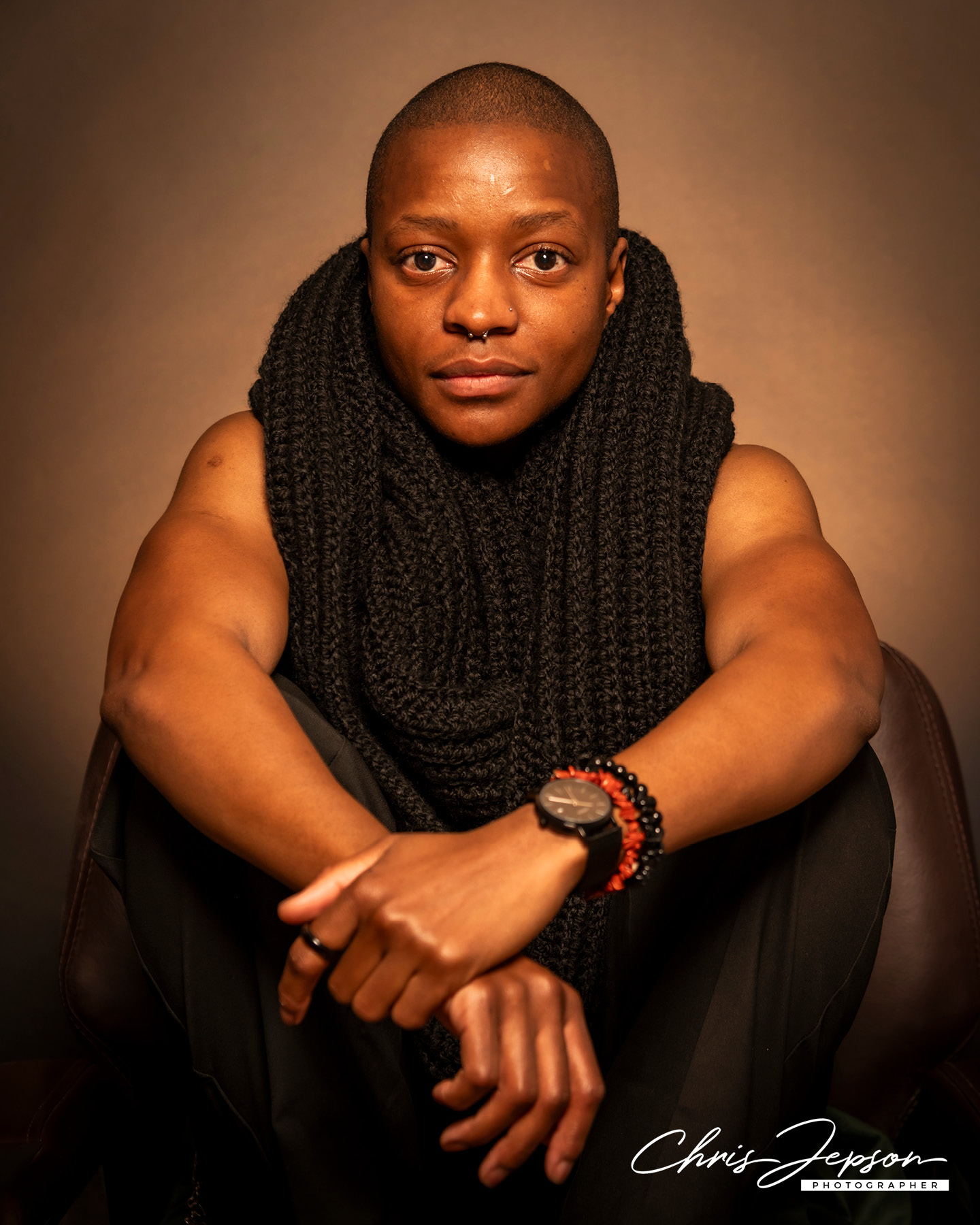 I wore a red jasper bracelet for embodied confidence. Chris made the whole experience feel safe, enjoyable, and celebratory. I felt completely at ease, and he truly captured my essence. I love the depth and warmth in the images, both visually and emotionally, and the way my skin glows. I feel bold, powerful and wholly myself.”